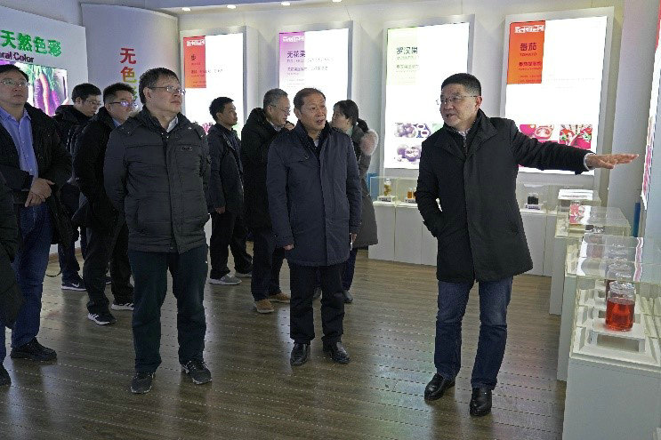 考察團一路風(fēng)塵仆仆,沒有多余的寒暄,沒有片刻的歇息,就在李總的帶領(lǐng)下來到中大恒源“中國天然植物提取體驗館”參觀。李總首先介紹了中大恒源的原料生產(chǎn)基地、天然色素、天然健康提取物、天然香精香料、生物替抗、植物染料等天然植物提取系列產(chǎn)品,看著色彩斑斕、琳瑯滿目的產(chǎn)品,令長期奮斗在教學(xué)科研第一線的專家、教授們感到驚奇:“沒有想到一個企業(yè)能夠心系民族產(chǎn)業(yè),心系人類健康,把天然植物提取做得這么深、這么細、這么廣,真了不起!”